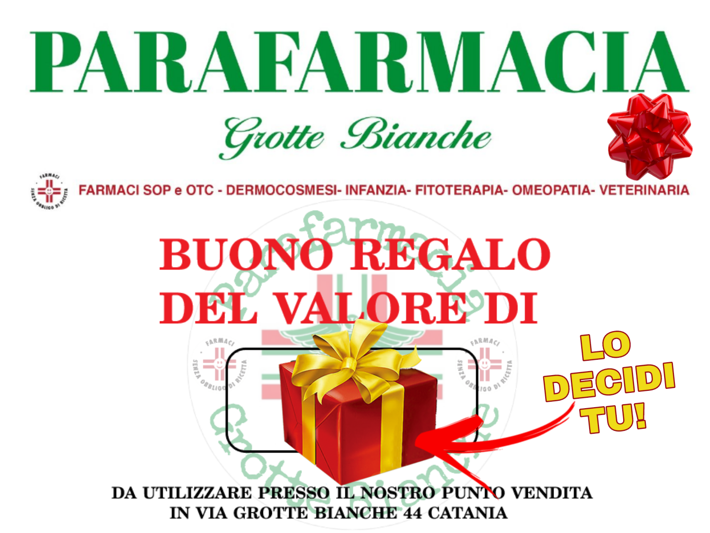 La Parafarmacia Grotte Bianche si occupa della vostra salute con un approccio che affianca ai farmaci da banco l'efficacia dei prodotti fitoterapici e naturali. Si pone innanzitutto come punto di riferimento per il consiglio, grazie alla decennale esperienza da titolare di farmacia della dott.ssa Daniela Greco. L'ascolto del cliente come punto di partenza per trovare insieme la soluzione più adatta per l'equilibrio e la cura della persona. Aver cura di sé non vuol dire solo usare farmaci quando si sta male, ma deve essere un impegno quotidiano per ridurre al minimo l'insorgere di disturbi e problematiche. Offriamo prodotti di qualità e consulenza in fitoterapia, dermocosmesi, make-up, infanzia, veterinaria, omeopatia, dietetica, integratori.